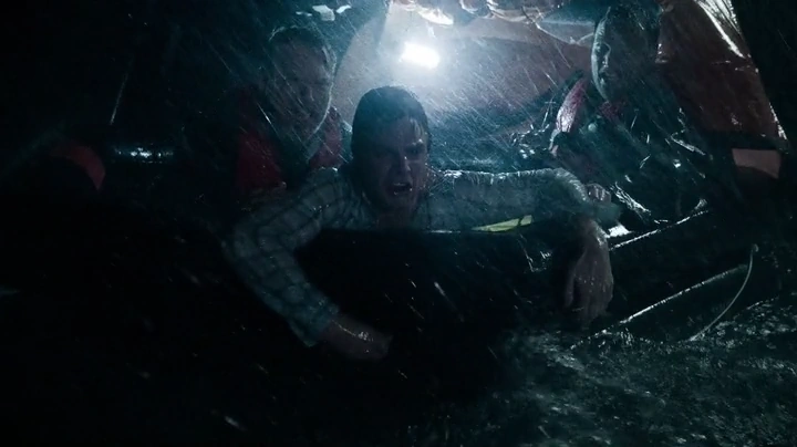 Oliver en el bote justo después del hundimiento del yate.