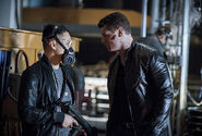 - John Diggle se retrouve en cellule à "US Disciplinary Barracks, Langham Penitentiary". Il est accusé d'espionnage, de meurtres, conduite indigne. C'est son commandant qui l'a manipuler pour couvrir ses traces alors qu'il voulait voler le détonateur de missile ayant servit à Damien Darhk.