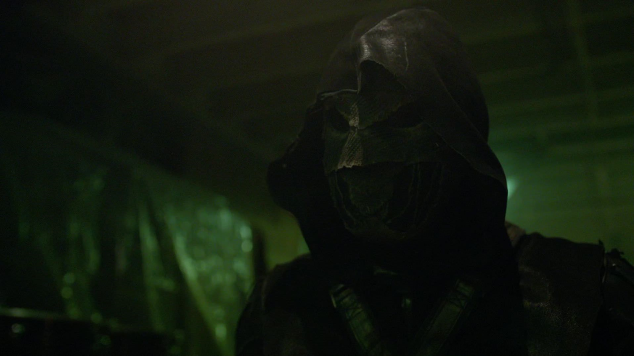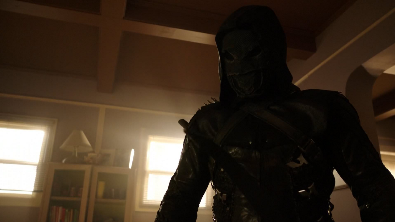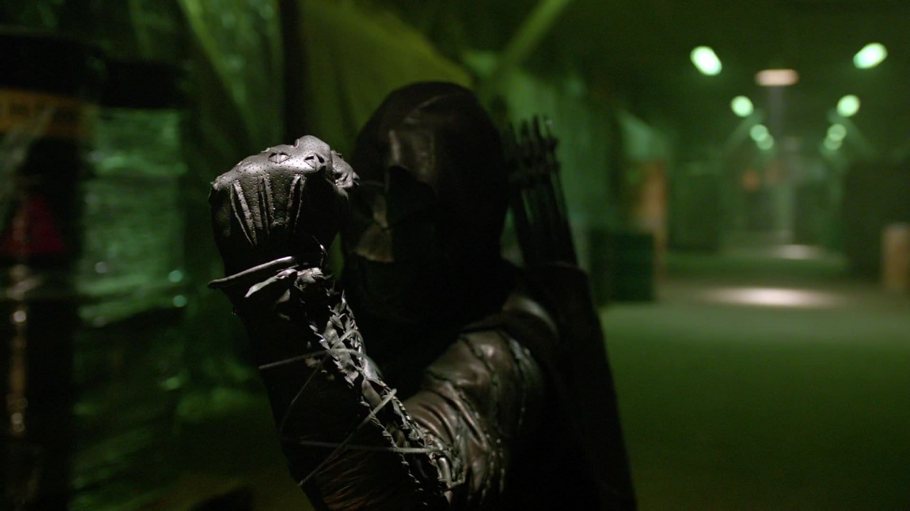 At Claybourne Pharmaceuticals, Prometheus confronted Green Arrow and the two engaged in a battle. Prometheus managed to hold his own for a bit and showed off a technique Talia had taught them both. Suddenly, Wild Dog shot his katana out of his hand, causing Artemis to intervene and reveal their allegiance. As Green Arrow and Wild Dog stood in shock, Artemis fired a smoke arrow to cover their escape.