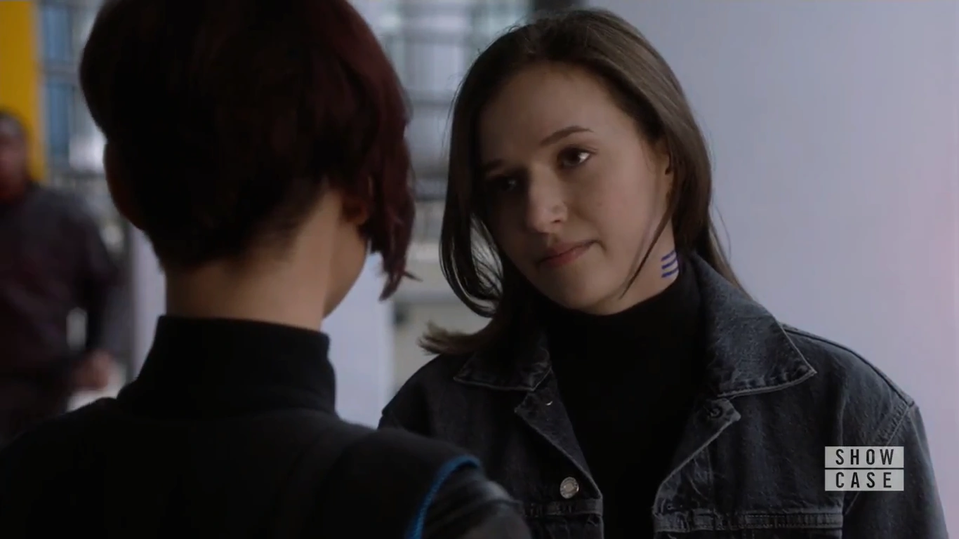Back in the real world at Alex's apartment, Kelly finds her and sees her contacts have turned red. She tries to call Alex from the game by turning it off, but when Kelly is unable to, she puts on a pair to follow her. Alex has just finished capturing Psi and putting her in a cell. Kelly finds her with Brainy and J'onn, and tries to call her back out of the reality. Kelly is left shocked when Alex clearly believes she is Supergirl and doesn't understand. They are worried that something has happened to Kelly and the boys try to take her away to be examined. Kelly immediately exits herself from the game.