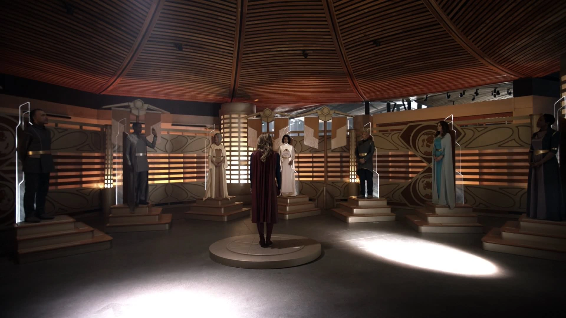 The four of them investigated Selena's house and through a hologram, discovered that Selena and the dark Kryptonians were intending to revive Reign and use her to terraform Earth into a New Krypton. The house then exploded, leaving Thara injured. Kara then realized that Selena could not have known that Kara would return again after giving her the Harun-El, and said that she had to have had another plan of getting to Earth. Alura then led her and Mon-El to a transmatter portal in Zor-El's lab. Kara used Alura's hologram on Earth to contact Winn to get him to help link the D.E.O's portal to theirs so they could return to Earth. Before Winn could activate his portal, the dark Kryptonians attacked the D.E.O., but Kara used Alura's hologram to trick a Kryptonian witch into activating the portal. Kara and Mon-El then returned to Earth to join the fight, accompanied by Alura.