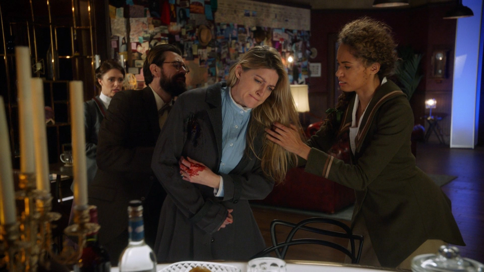 The trio made it to the train, but they had no tickets and were going to be kicked out until Maude Beaumont helped them, as the girls had to be together and asked the three of them to join her band. Astra and the girls arrived in Chicago, but they found out that Maude had problems with Ross Bottoni's mob, so they tried to help her put on a great show, but Gideon confirmed that in the timeline Maude was murdered by Ross.