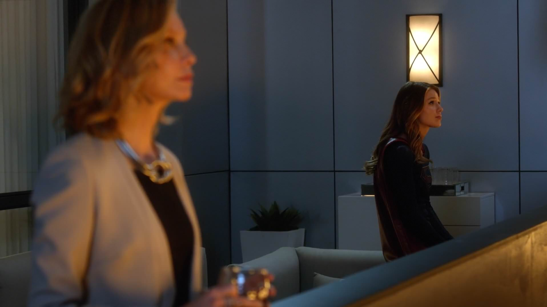 Cat was having a tough time because her mother; Katherine Grant was visiting and of course gives Cat no respect. Cat takes it out on Kara. Kara yells back at Cat and immediately apologizes. Cat takes them both out for a drink. Kara gives a cup of water to Cat, who drops the glass and it breaks.[2]