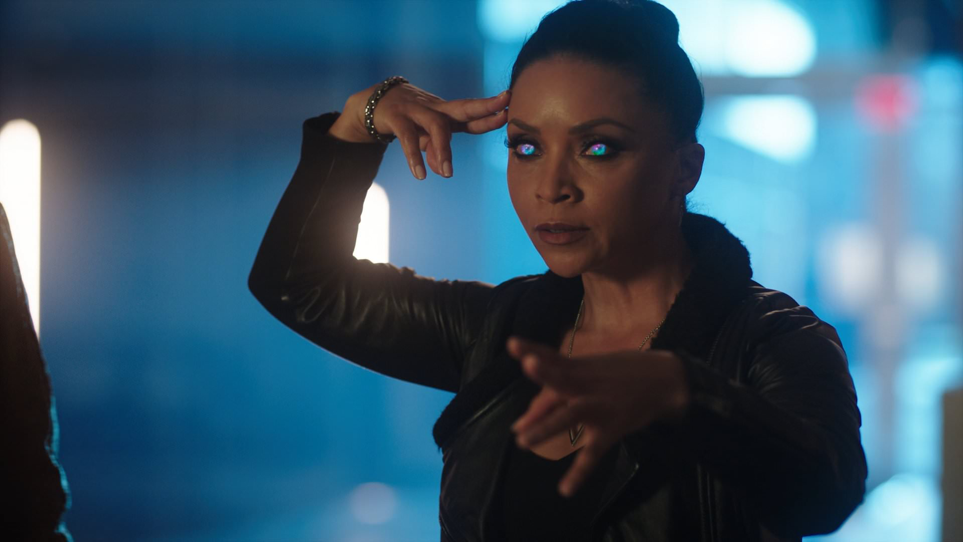 Pathokinesis: After her confrontation with Rosa Dillon, Cecile has learn how to project her feelings on to others, as shown when she transferred all of her fear and worries to Rosa in order to make her feel what Cecile felt.[43] With help from DeVoe chair, Cecile was able to use her power to project Barry’s courage across the city to everyone to counter Psych own Telepathic powers.[45] Cecile was able to also share her peaceful thoughts and feelings with Esperanza Garcia during her surgery to help stabilize her. She was also able to induce emotions of fear and regret into a group of bank robbers.[59]