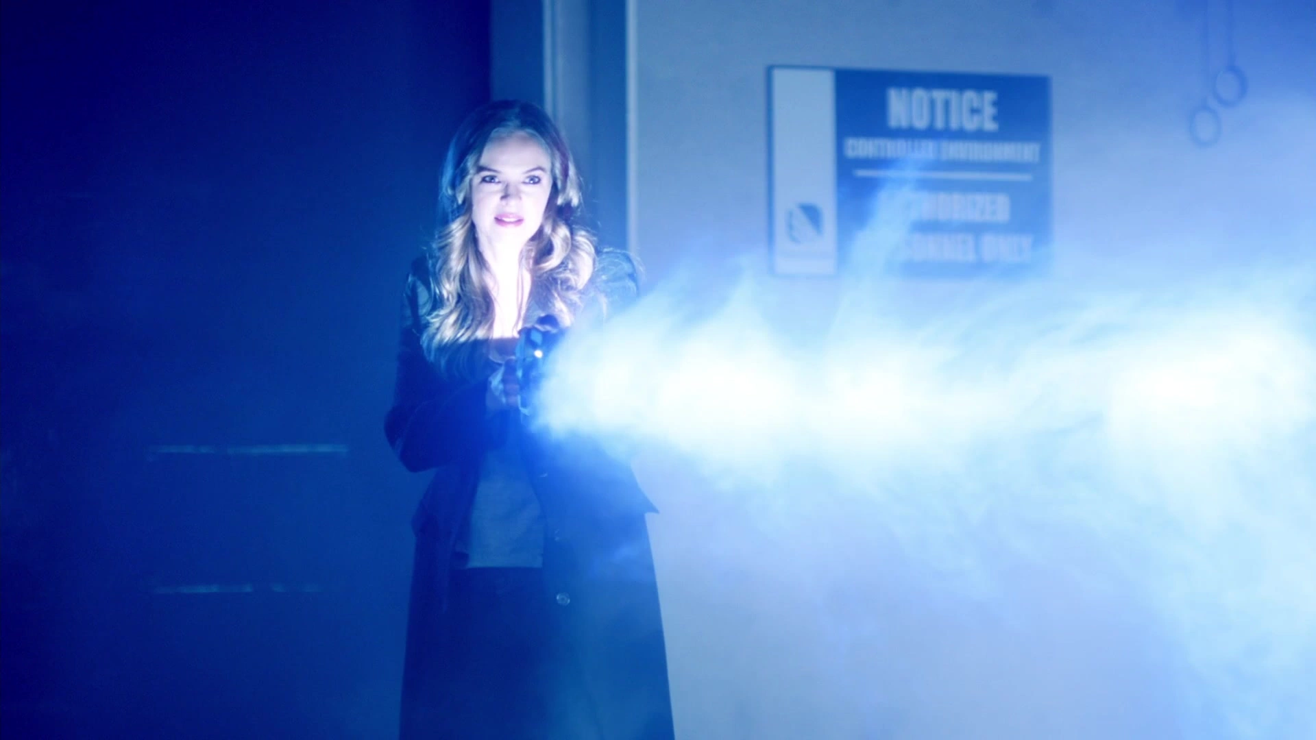 Caitlin Snow using the cold gun to attack Clifford DeVoe.