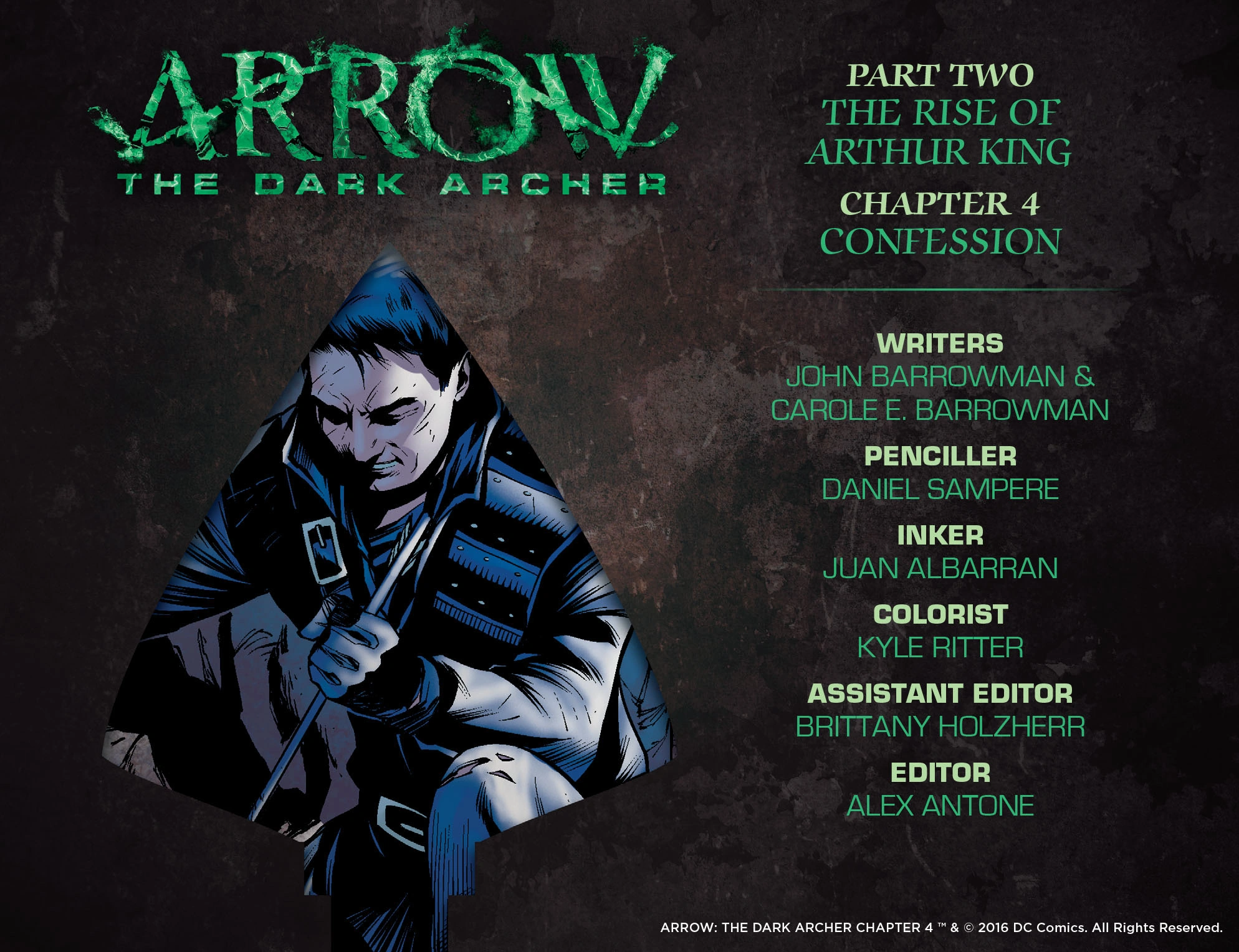"Confession" is the fourth chapter of the comic book series Arrow: The Dark Archer, and the first chapter in the The Rise of Arthur King arc. It was released digitally on February 24, 2016.