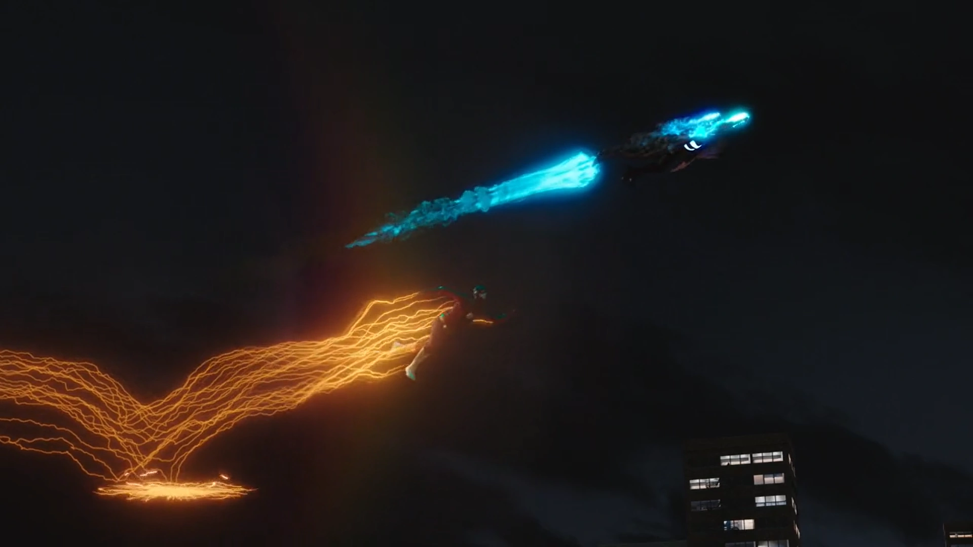 Deathstorm appeared as Ronnie to Frost and insulted Frost of not being a real person. Deathstorm simultaneously had glamors of Quincy, Esperanza, Eddie and Nora Allen terrorize Team Flash, steal his victims' grief, and transfer it to complete Caitlin's transformation. Hellfrost then battled Deathstorm through the sky and killed him by consuming him, but Frost died in the process.[1]
