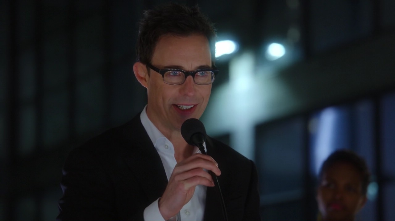 Eobard celebrating S.T.A.R. Labs' particle accelerator's completion.