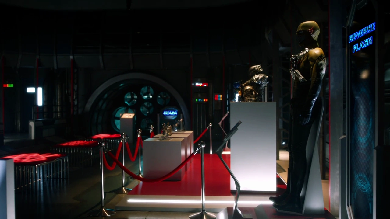 As S.T.A.R. Labs was created, Eobard built a secret room accessible only via hand-print where he kept his belongings, including the Gideon program which was still able to stay informed of future events, including a newspaper article written by Iris on the 2024 (now 2019) crisis. This paper acted as a deadline as to the remaining time Eobard had to harness Barry's speed and Eobard further used it to keep tabs on the timeline, and if any changes occurred, take the necessary steps to get the timeline back on track for his own sake. Eobard also kept the Reverse-Flash suit on a display case,[10] and also stored a second suit away in the room.[23] He also set himself up in a mansion but he never kept any future belongings in his house itself for security reasons.[24] In the Post-Flashpoint timeline, Eobard also built what was later known as the speed lab.[25]