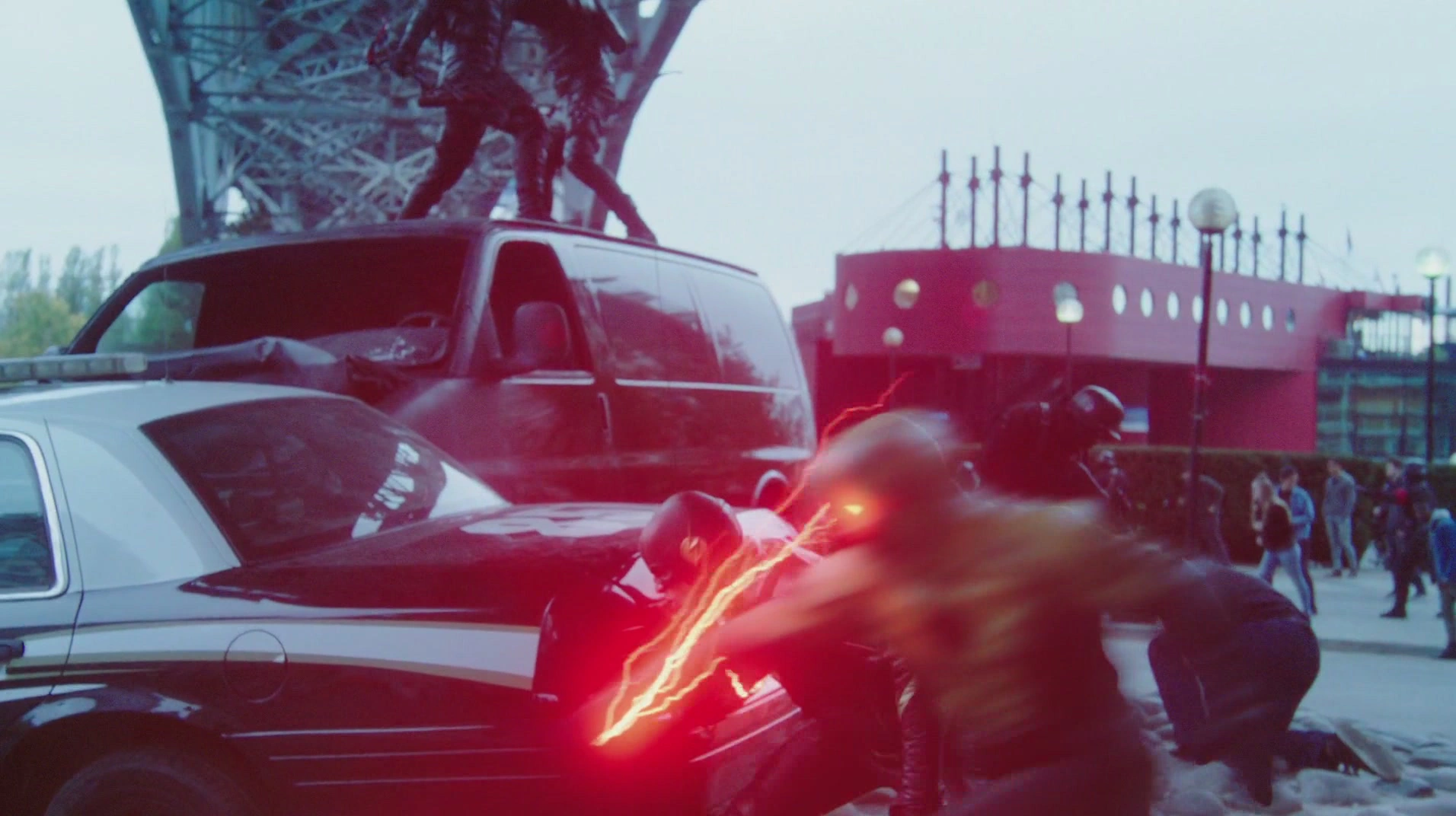 The Reverse-Flash arrived in January 2016, Central City.[5] After Gideon confirmed his whereabouts, he began searching for the Flash. Eobard rigged a truck to drive at high speeds and collide with a building to lure Flash out, and was successful. Pleased to have located the exact time era Flash was active, Eobard planned his return home to properly plan his next attack and broke into one of Mercury Labs' offsite facilities, and prepared equipment designed to act as a time machine to send him back to his own time. However, Eobard was unable to replicate the tachyon power source and sought out Dr. Tina McGee.