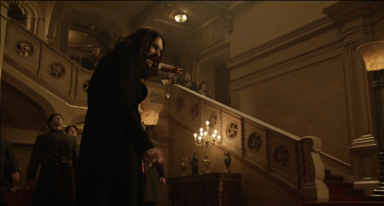 During hypnosis, Rasputin was shot by Ava Sharpe, so he ordered his servants to kill her. Mick Rory tried the burn him using his Heat Gun but Rasputin controlled the fire of the weapon using his powers. Knowing that the mission had failed, the Legends withdrew but forgot Kevin Harris there. He invited the Romanov family to dinner. He poisoned the family cakes with cyanide to kill them and steal the throne and used Kevin to record his story. When the Romanov family arrived, he welcomed them. Grigori offered them the poisoned food but was stopped by Behrad Tarazi and Sara Lance. In anger, he hypnotized Behrad and his servants and ordered them to kill Sara. One of his servants announced the arrival of Anastasia Romanov, who was actually Ava Sharpe in disguise. Ava threw a knife at him but did no damage.