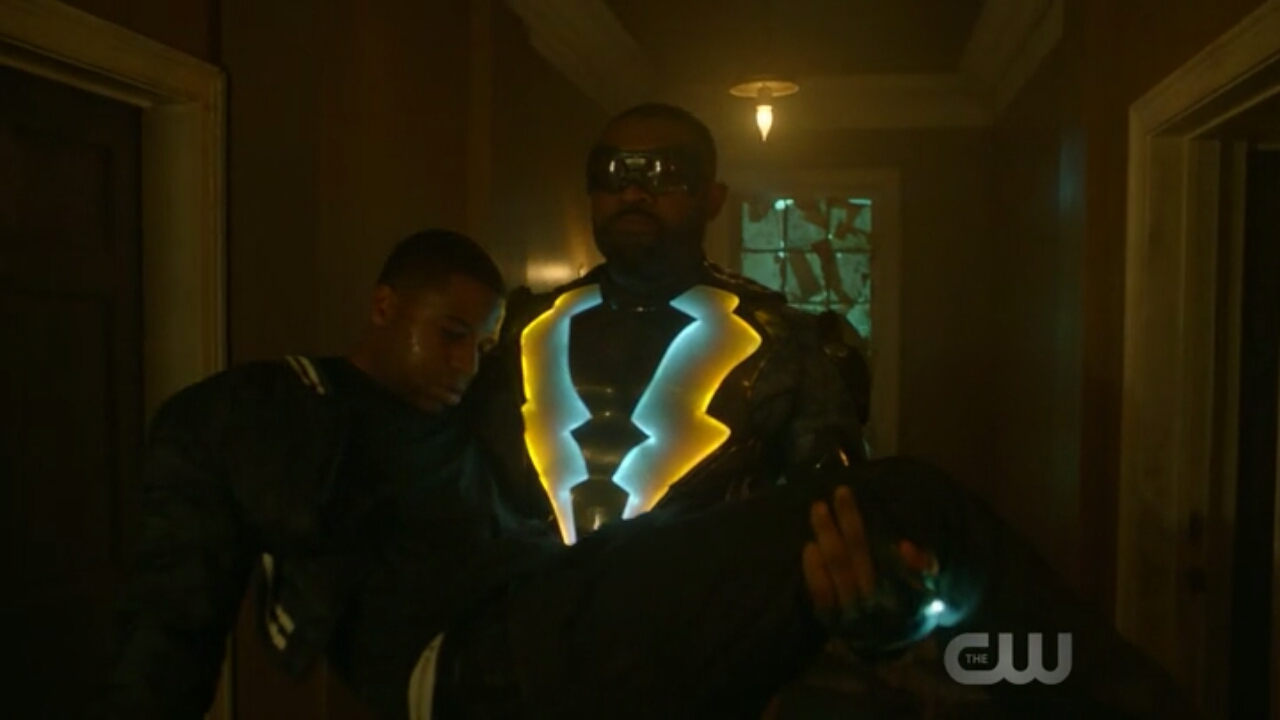 Black Lightning suit: Like in the original multiverse, Jefferson wears a protective suit when he act as a vigilante.
