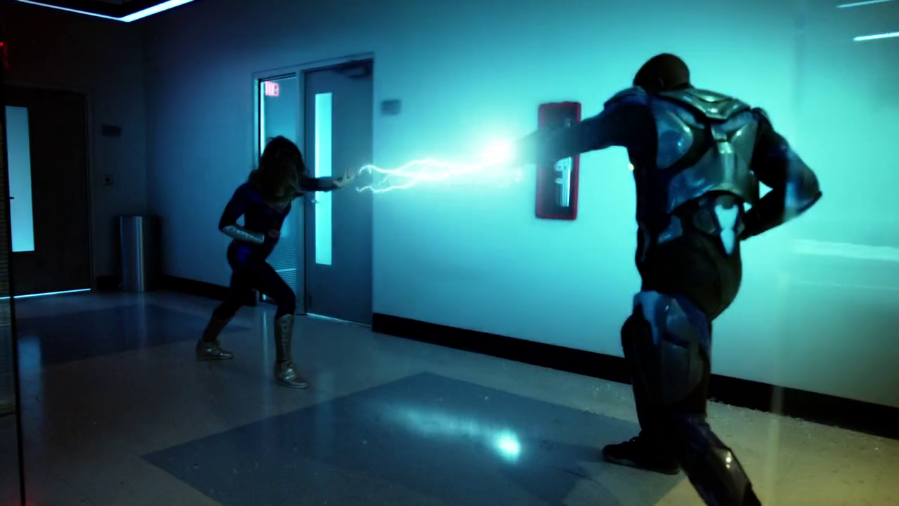 Black Lightning blasts lightning at Anissa.
