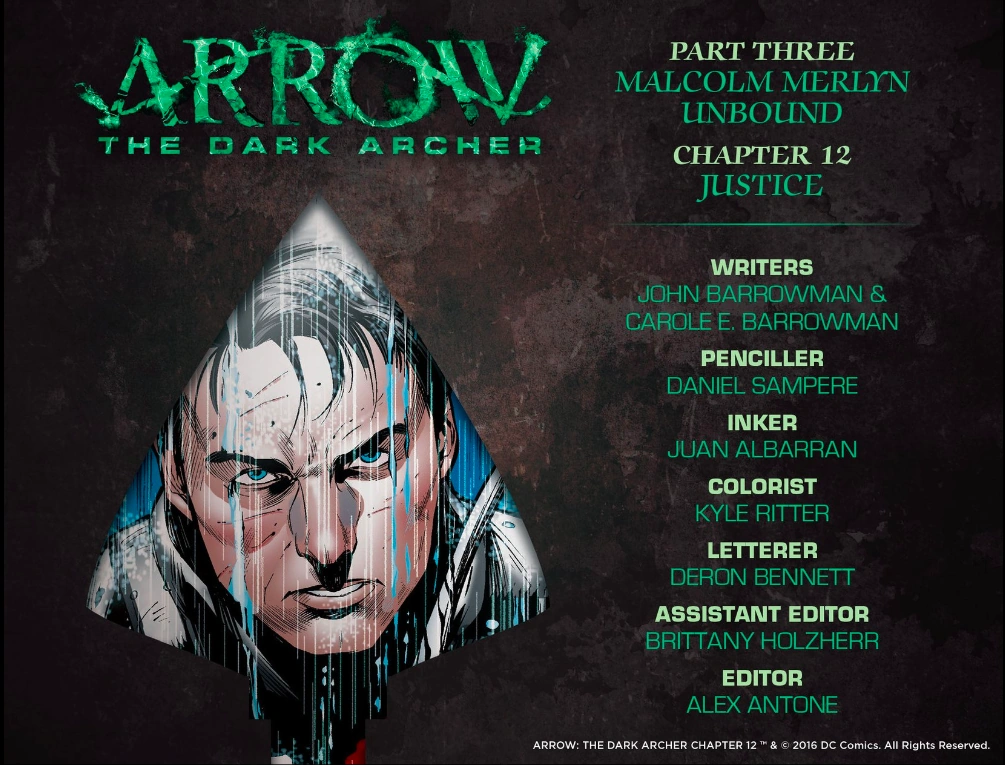 "Justice" is the twelfth and final chapter of the comic book series Arrow: The Dark Archer, and the fourth and final chapter in the Malcolm Merlyn Unbound arc. It was released digitally on June 15, 2016.