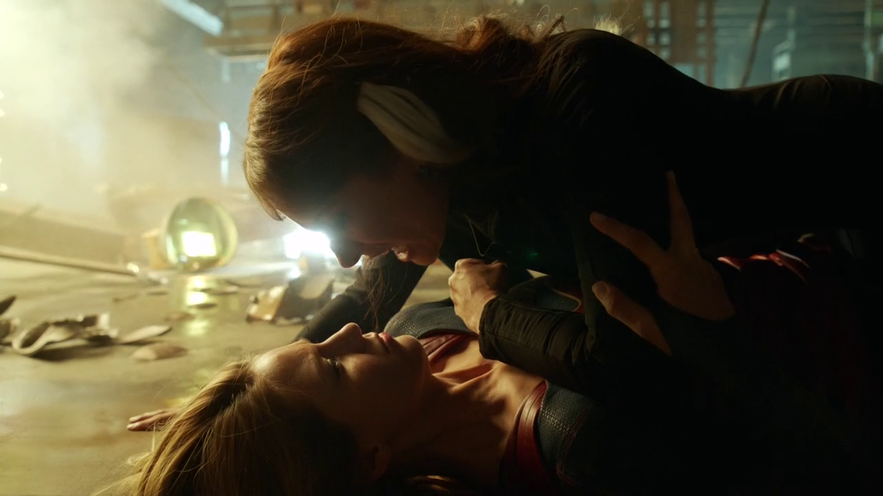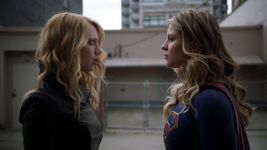 While Superman and the Martian Manhunter dealt with Gilcrist in Metropolis, Supergirl and Alex overcome Corben in National City, as Alex stabbed him in the chest with a piece of pipe while Kara held him. In the evening Kara flew to Cat Grant in the guise of Supergirl and said that she knew that she was leaving, telling her she admires her. Kara then once again came to Snapper, giving him an article about the battle between Supergirl and Metallo with the testimony of eyewitnesses, and the comments of police, but he did not even want to read it entirely, then Kara said she would find another magazine who will take her article, but he stopped her and said to come back tomorrow. Immediately after that, Kara went to D.E.O., to say goodbye to Clark, who returns to Metropolis. Then she decided to visit the comatose alien, who suddenly woke up and seized Kara by the neck,[39] then threw her aside and ran away from the D.E.O.[40]