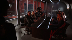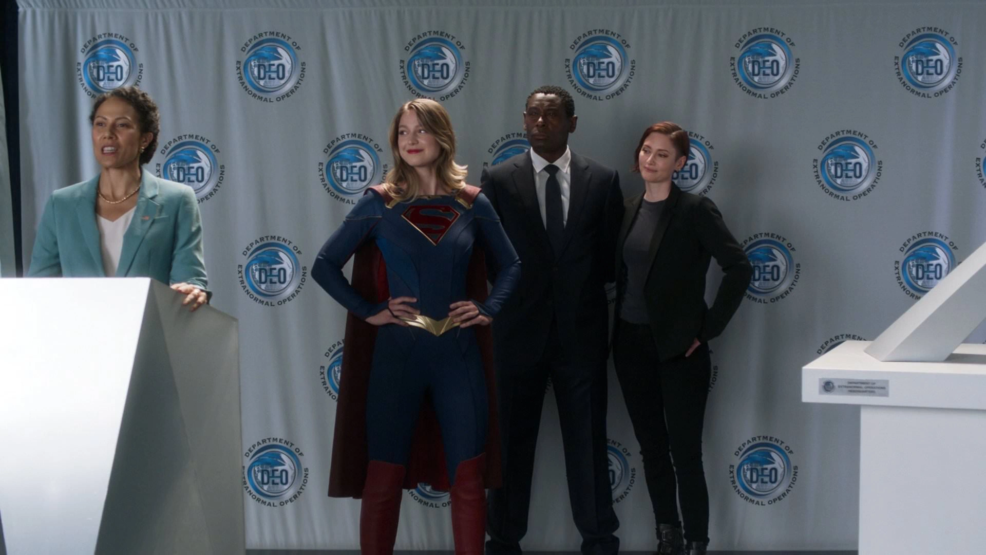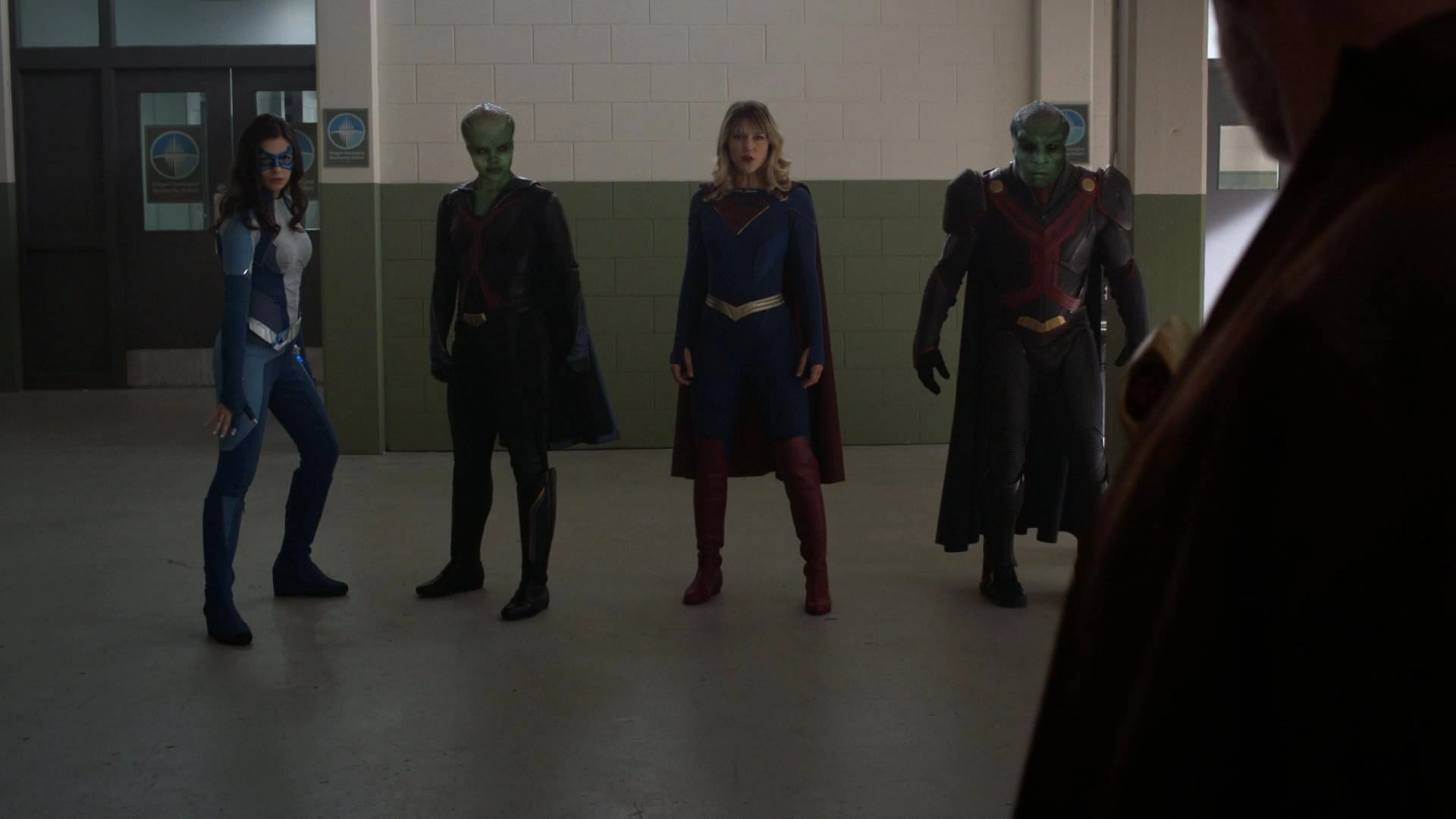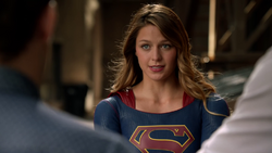 Days after, Kara went to stop a bank intervention in the morning, though everyone fled when she arrived, due to her scaring everyone while under the influence of Red Kryptonite. She then took a sick day at work, and later fails at listening in on Colonel James Harper's interrogation of J'onn. Kara along with Alex later object when J'onn is taken into custody, though to no avail. She is later shocked when Alex is also taken into custody, and the two are both being sent to Project Cadmus. Kara later has James explain what Project Cadmus is, and Kara is forced to reveal her identity to Lucy in an attempt to save J'onn and Alex. Both Kara and Lucy later break J'onn and Alex out while they were in route to Project Cadmus. Kara offers to hide Alex in the Fortress of Solitude while she finds Jeremiah, but Alex insists that she has to be the one to find him. Back at the D.E.O., she agrees to help Lucy, as Lucy is promoted to acting director of the D.E.O.. Upon being informed that a bank robbery is underway, Kara heads off to stop it. However, she didn't know if National City would ever trust her again, though Lucy reassures her that if she can win her trust, she can win back the city.[16]