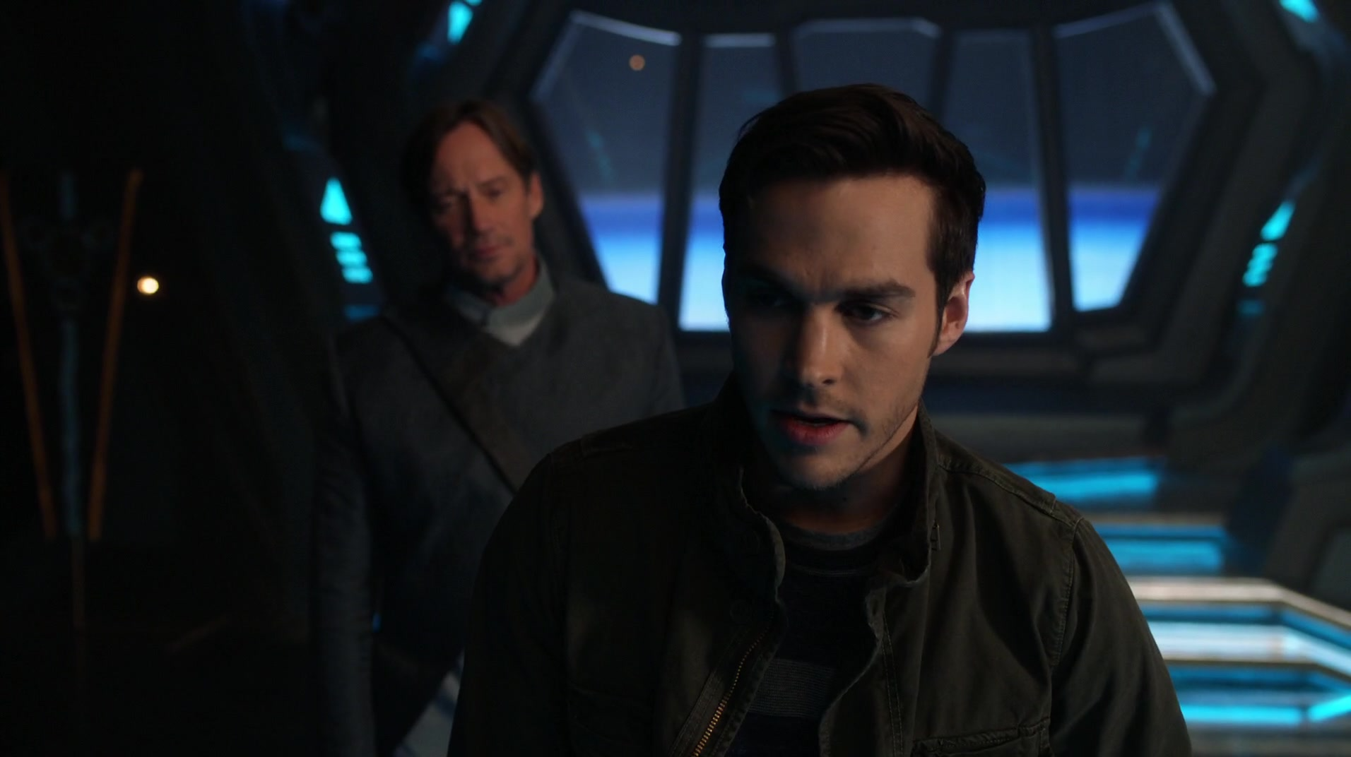 Lar Gand and Rhea meet with Mon-El in the Alien Bar.