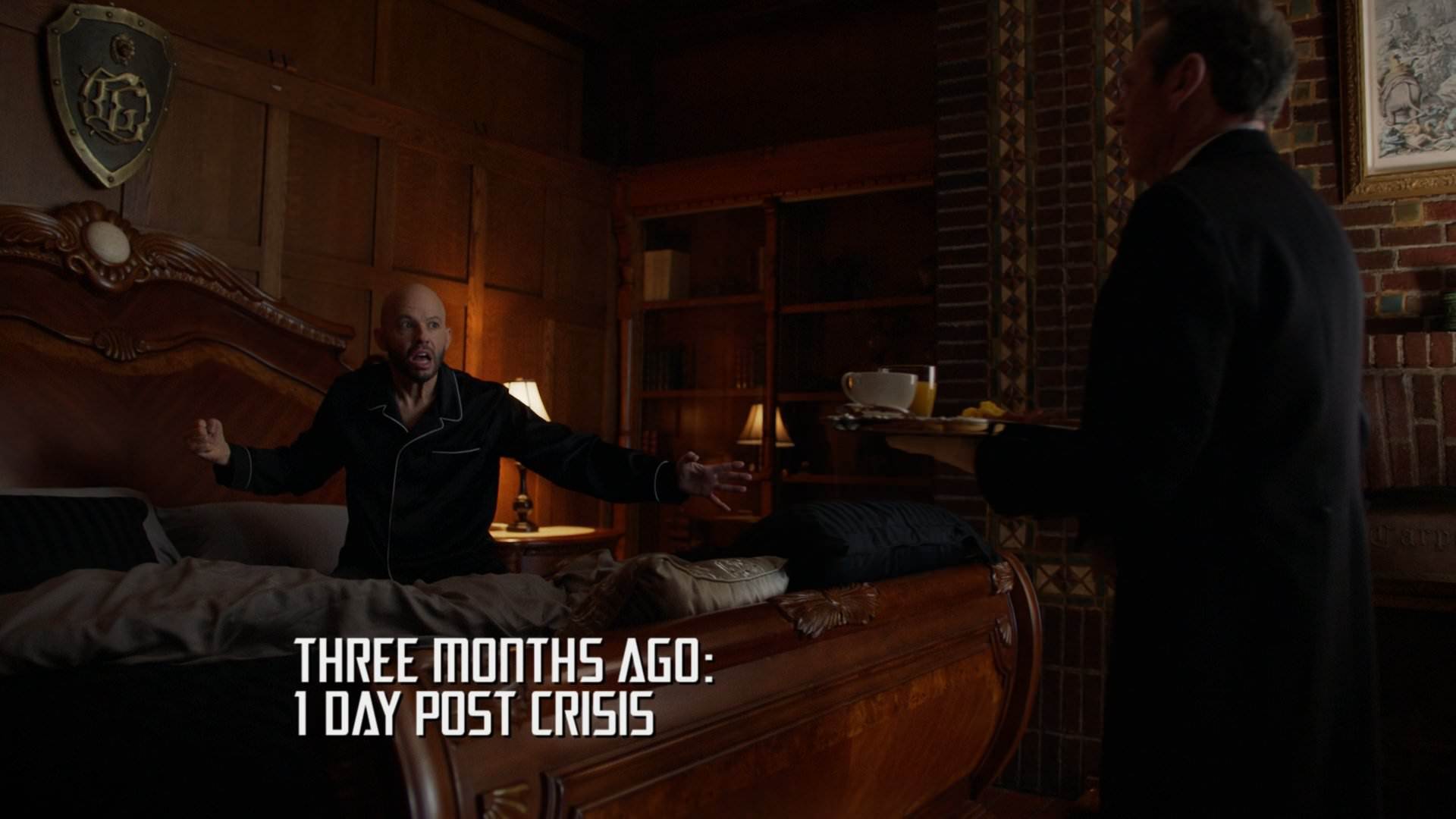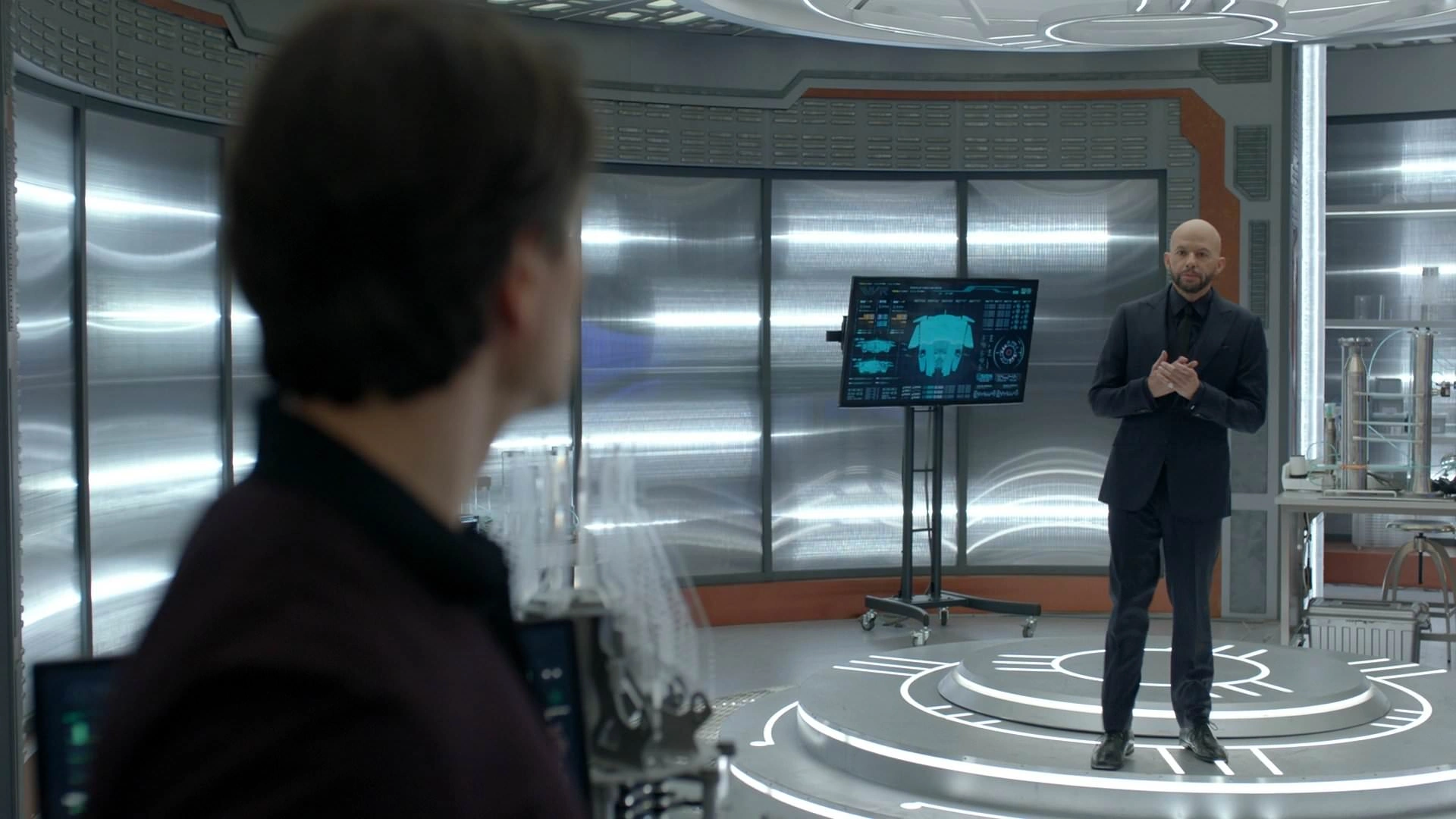 After he was escorted inside and handcuffed to a wheelchair by the federal agents, Lex explained that they never let him out of their sight as if they feared he would escape like a dog without a leash, to which Lena told him he would have done it, causing Lex to smile and told her he couldn't due to his condition, reminding her that he was dying. Lena replied sarcastically that she knew it, since in the past six weeks he only spoke about that during their phone calls. Lex told her that he was not accustomed to needing help, telling he considered it "weak" and "pathetic", as well that he would be saved if she tested the Harun-El on humans. After Lena firmly refused, he asked her what was the meaning of all he had done to help her have better resources to her work then, asking if everything she really wanted was "a front row seat to watching him die", to which she replied that despite everything he was her brother and she wanted to save him. They were interrupted by Eve Teschmacher, who entered the room in a panic to inform Lena about James, and was mocked by Lex who asked for a macchiato, telling her to call him "Lex" as it was easy to write.