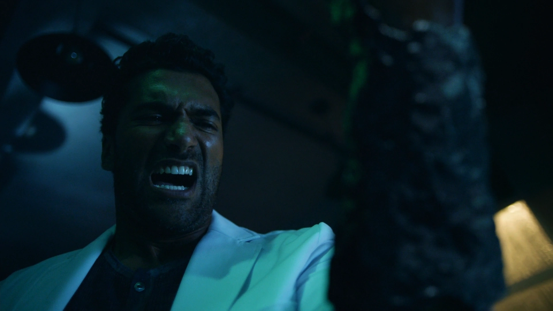 When Shay was exposed to the theoretical particles of the particle accelerator, he was being injected with regenerative shark cells, in the hopes of curing his stage-four illness. He was combined with these cells, causing his head to mutate in to that of a shark's.[18] This failed on Earth-1; where Shay mutated into a mass of tumours. However, on Earth-2, that universe's Shay was mutated into a human-shark hybrid, known as "King Shark". | Shay Lamden (The Flash: Season Zero) Shay Lamden (Earth-2) |