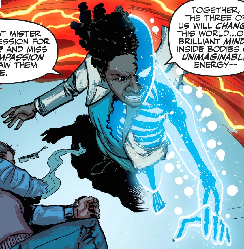 One person, Wangari Hollowell, was affected by the S.T.A.R Labs particle accelerator. This made his left part of his body mutate into quantum energy, able to melt organic materials and absorb surrounding energy. | Wangari Hollowell |