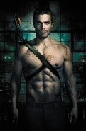 Oliver's costume as The Arrow is featured as an alternate costume for Green Arrow in the video game Injustice: Gods Among Us, which was originally available to the first of 5,000 people who voted in an Injustice Battle Arena. Using this costume also changes Green Arrow's voice actor to Stephen Amell, Oliver's actor.