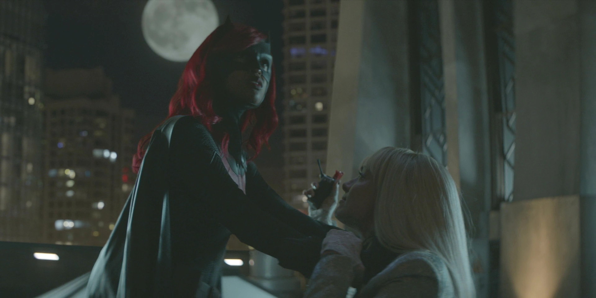 Months ago, Ryan Wilder was assaulted by robbers when Batwoman saved her life by throwing a batarang at the theft who was about to shoot Ryan before Ryan throws the batarang at a robber to save Batwoman. Wilder was thankful and Kate was so impressed that she noted the experience in her journal to Bruce.