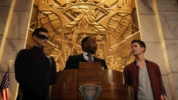Ralph and Barry trained how to behave in the confrontation with the Thinker. However, the man turned everything into a joke, which began to irritate Allen. While searching for Janet Petty, the detectives found a crime during which the Kahndaq dynasty crown was stolen, and the team considered the wanted one to be guilty. Well-meaning Ralph accidentally messed up a crime scene, which irritated Barry. When Harry identified Earl Cox's headquarters as Null's whereabouts, they both headed there. Dibny took on the look of Joe to scare a friend, setting Allen into a trap and allowing her to escape. After returning to the laboratory, the scientist suspended his friend in activities, unable to bear his disobedience. After a few hours, Barry decided to speak frankly to Ralph, who finally made him understand that he acted like this when he was nervous and had been like that since childhood, which was not easy. These words changed the perception of the man by a friend who asked him for help in capturing Null. On the spot, the sprinter ran into trouble, but he let the ally act, who successfully caught Petty and saved him. Back in the lab, the team celebrated their victory and Allen apologized for his behavior.[2]