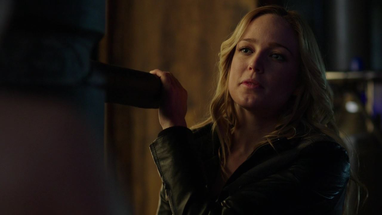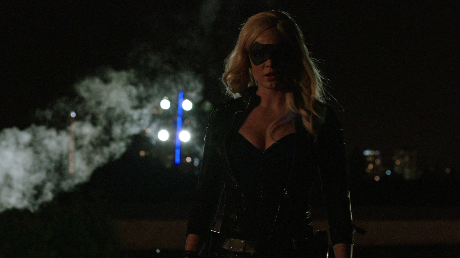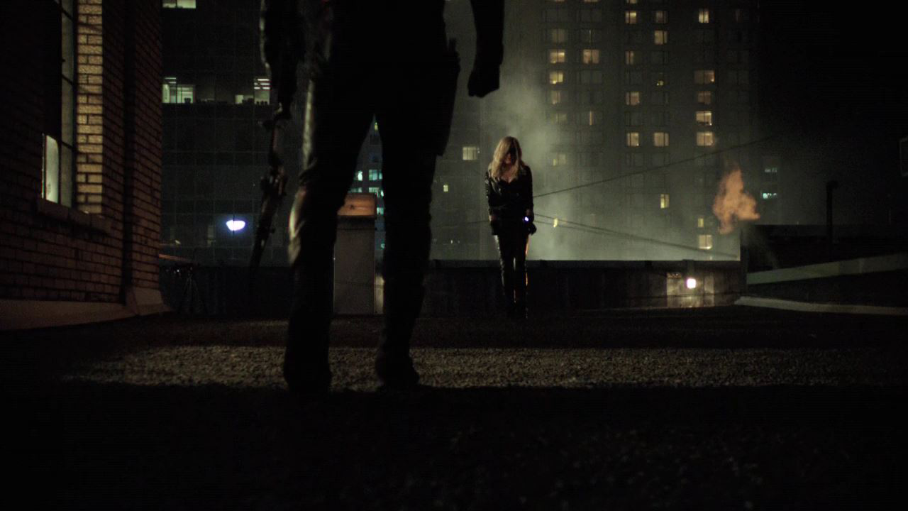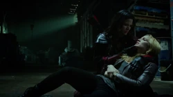 When the Arrow was cornered by an SCPD S.W.A.T. team led by Laurel at the D.A.'s office, the Canary swooped in and used a sonic device to disorient the policemen and shatter the windows. The two vigilantes used the chaos to quickly escape the scene. Sometime later when Roy was lured into her hideout by Sin, The Canary knocked him out with her staff. She asked why he was looking for her, but was interrupted by a message on Roy's phone from Thea Queen, telling him that Laurel and Quentin had been kidnapped. The Canary immediately took off to save her family, letting Roy go.