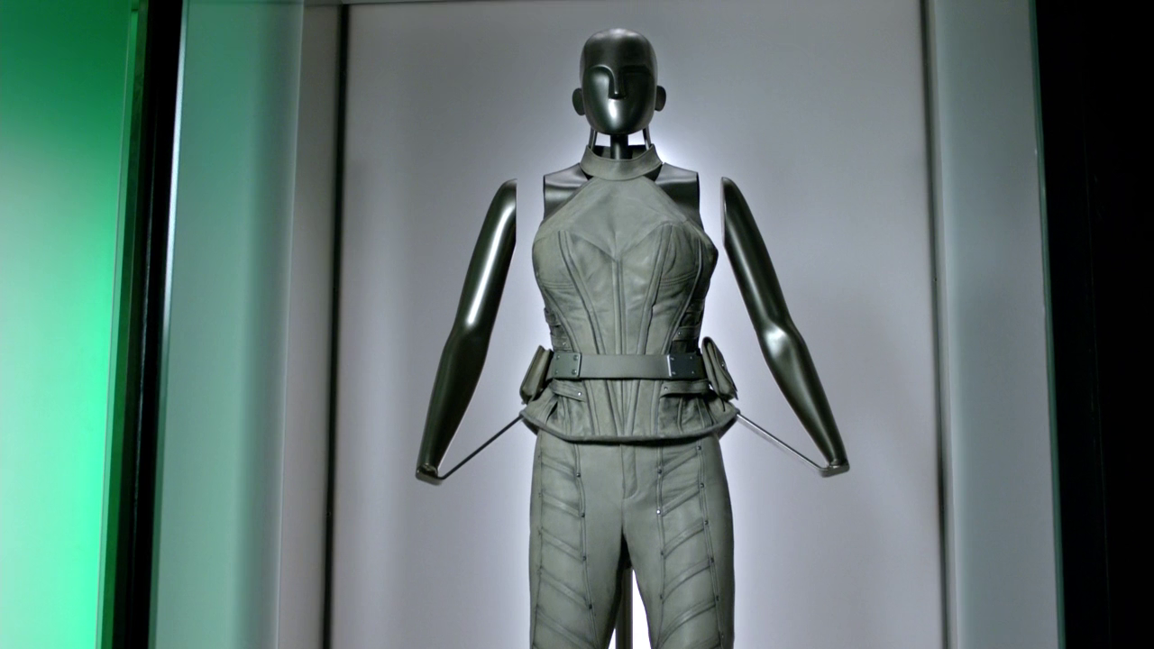 The Canary suit: Sara wore a black leather suit, the pants being reminiscent of fishnet stockings, when she fought crime as her former vigilante alter-ego, the Canary. Along with this, she wore a mask to hide her identity from enemies (and also from friends and family, at first). Sara wore the Canary suit a couple more times after having her soul returned to her until joining the Legends, for which Laurel gave her the White Canary suit.