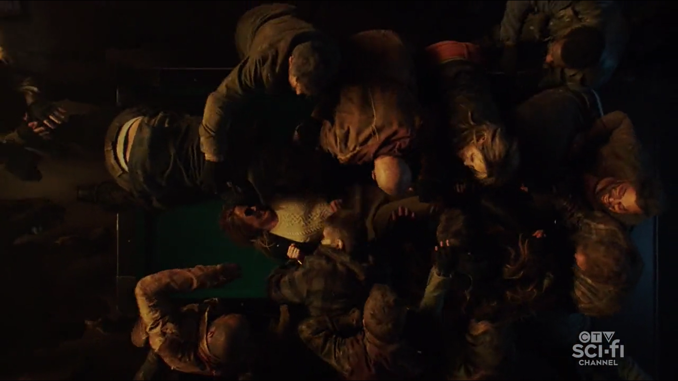 Sara in Nyssa's arms poisoned by Tibetan pit viper venom.