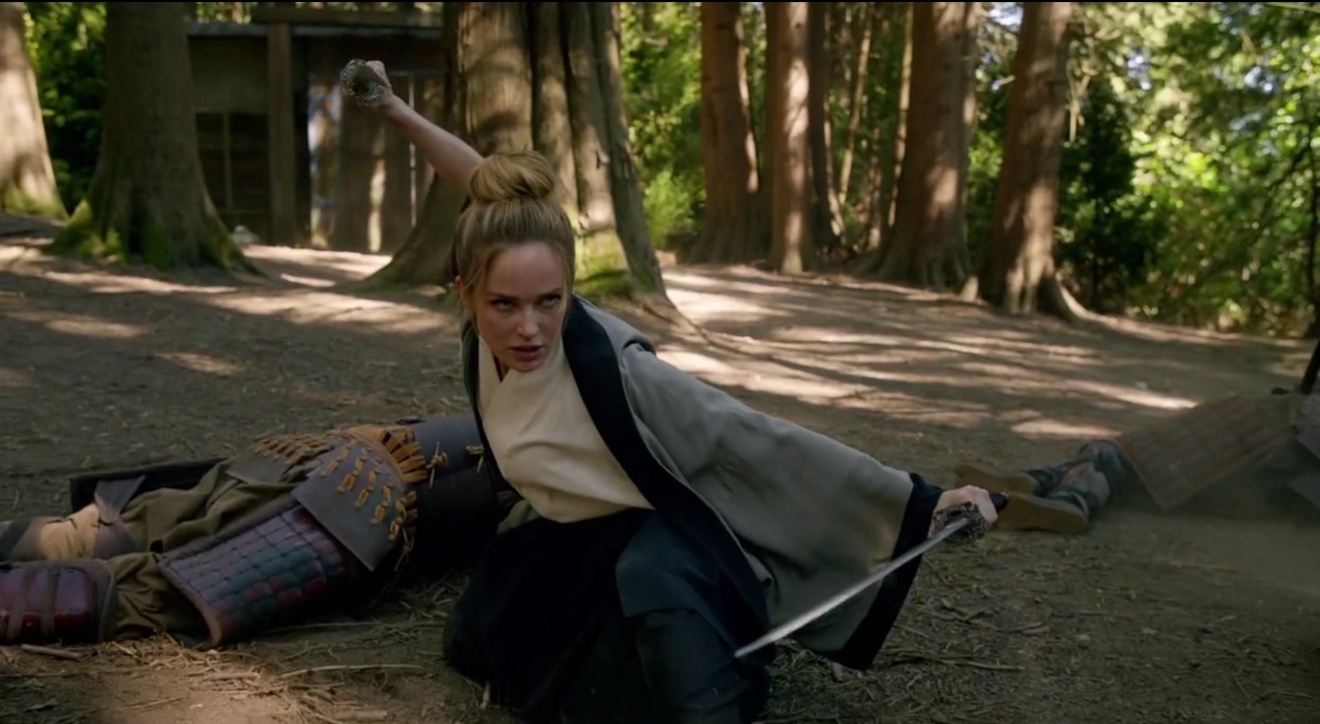 Acrobatics/Free-running: Sara regularly includes acrobatics in her fighting style; she is capable of scaling buildings, running from rooftop to rooftop with ease and has been known to use a scarf to quickly descend from ceilings. During her time in Feudal Japan, Sara performed an aerial maneuver in order to dodge a samurai's sword strike and kill her opponent.[66] She also utilized another aerial maneuver when fighting the Earth-XNazis, demonstrating the ability to grapple onto her enemies.[90]