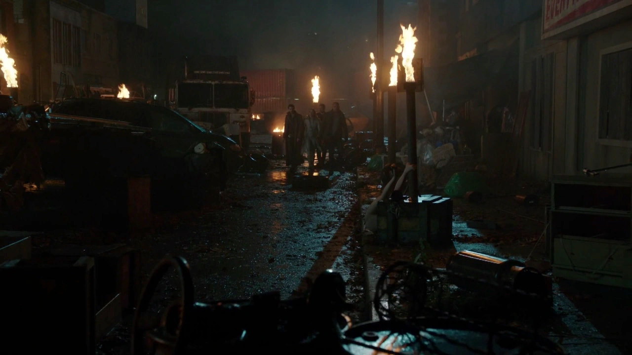 Sara and other allies of Team Arrow march to battle Slade Wilson's army.