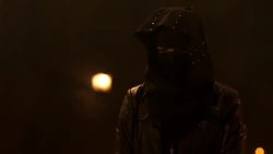 The Canary arrived at the abandoned Metamorpho Chemical, where she fought the kidnapper, Barton Mathis/The Dollmaker. The Canary easily subdued him but Mathis managed to drop a load of pipes on her, pinning her to the ground. Before he could harm her, The Arrow came in and shot Mathis with two arrows. Despite the Arrow's intentions to take the serial killer back to prison, The Canary killed him by hurling her baton through his chest. Upon returning to her hideout, The Canary was confronted by a member of the League, who informed her that Ra's al Ghul wanted her to return. The Canary tried to persuade the assassin to lie to Ra's that he couldn't find her, but he refused. She then killed the man to protect her whereabouts.[27]