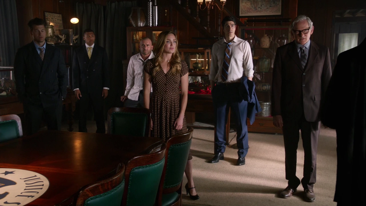 Sara recognized Slade Wilson's voice from the phone call from Oliver to Felicity, and brings Roy and Diggle to the Queen mansion, believing Oliver and his family to be in danger. She somehow entered the house and went to the first floor, after which she descended the stairs as if she had been there all along, confronting Slade while he shook hands with Roy.[30]