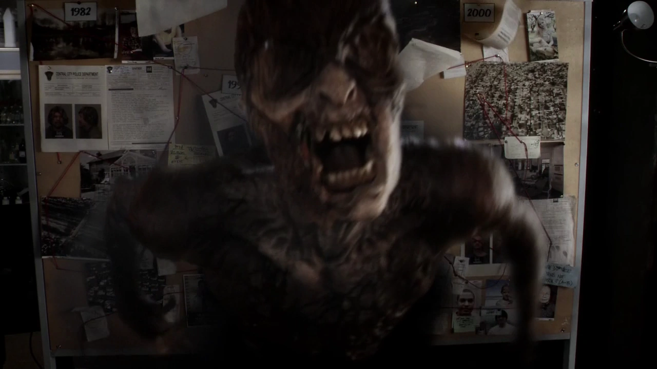 By tapping into the power of the Speed Force, speedsters can cause their eyes to transform in some way, either by being filled with yellow electricity, which can cause the surrounding skin to glow yellow, shining blue light, shining dark red light or electricity that can even cause the surrounding parts of the face to glow red, or the entire eye becoming pitch black. The first occurrence is the sign of a natural connection to the Speed Force and can even manifest for users of Velocity before the serum begins to degenerate them. The second, third and fifth occurrences are caused by a speedster tapping into the Negative Speed Force. The fourth occurrence is caused after the above-mentioned degeneration. The sixth occurrence is caused by a speedster being infected by Ramsey Rosso.