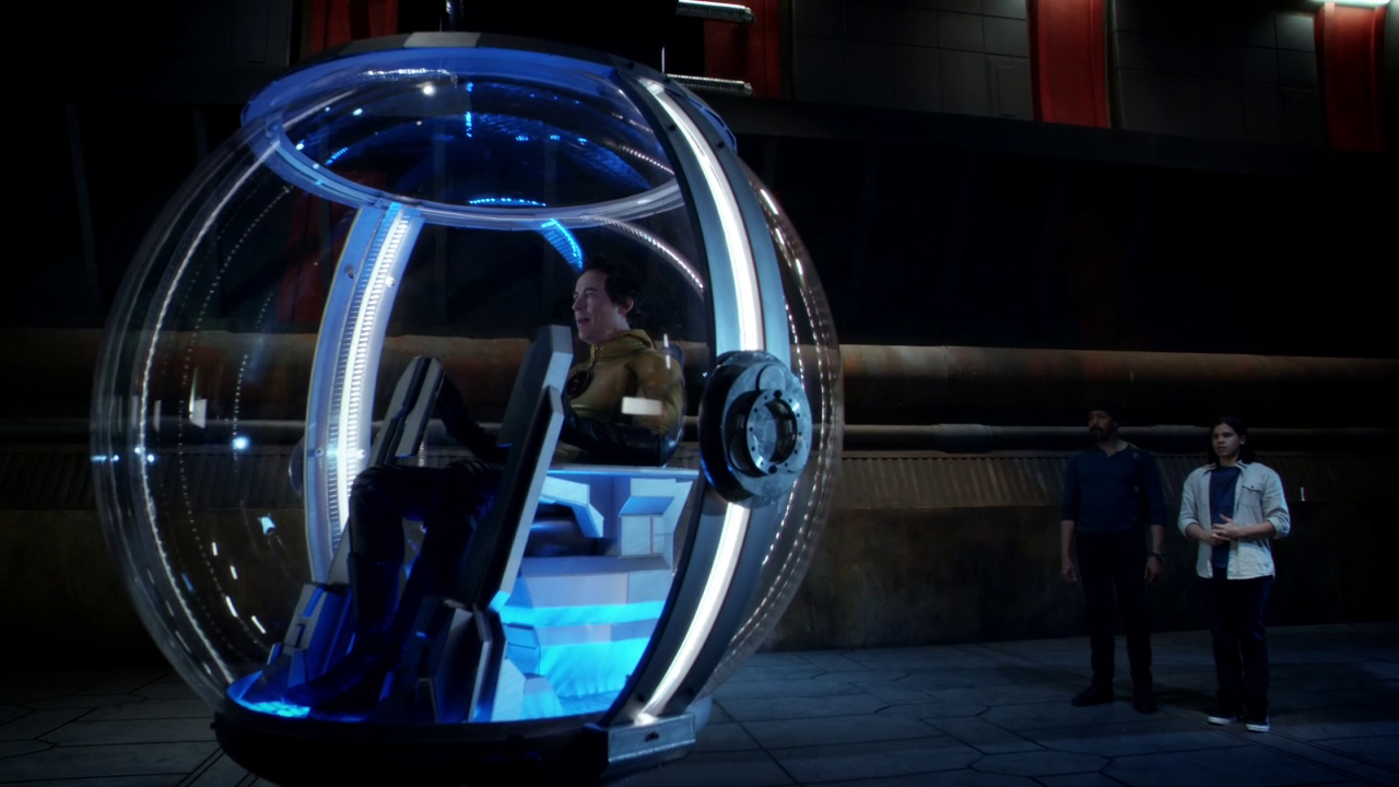 The day after future Grace's arrival, the future time sphere is detected by Team Flash who assumed that an asset was stolen. Cisco and Sherloque Wells breach to the future one's location in the forest while Iris West-Allen and Ralph Dibny find the present day version gathering dust in the Starchives. Suspecting these the two were one and the same, Cisco had Iris carve a lightning bolt scratch on the present day version which concurrently appeared on the future version, leading Team Flash to deduce that the future Grace traveled to the present. Joe West noted they couldn't destroy the present day version to stop future Grace without messing up the timeline.[4]