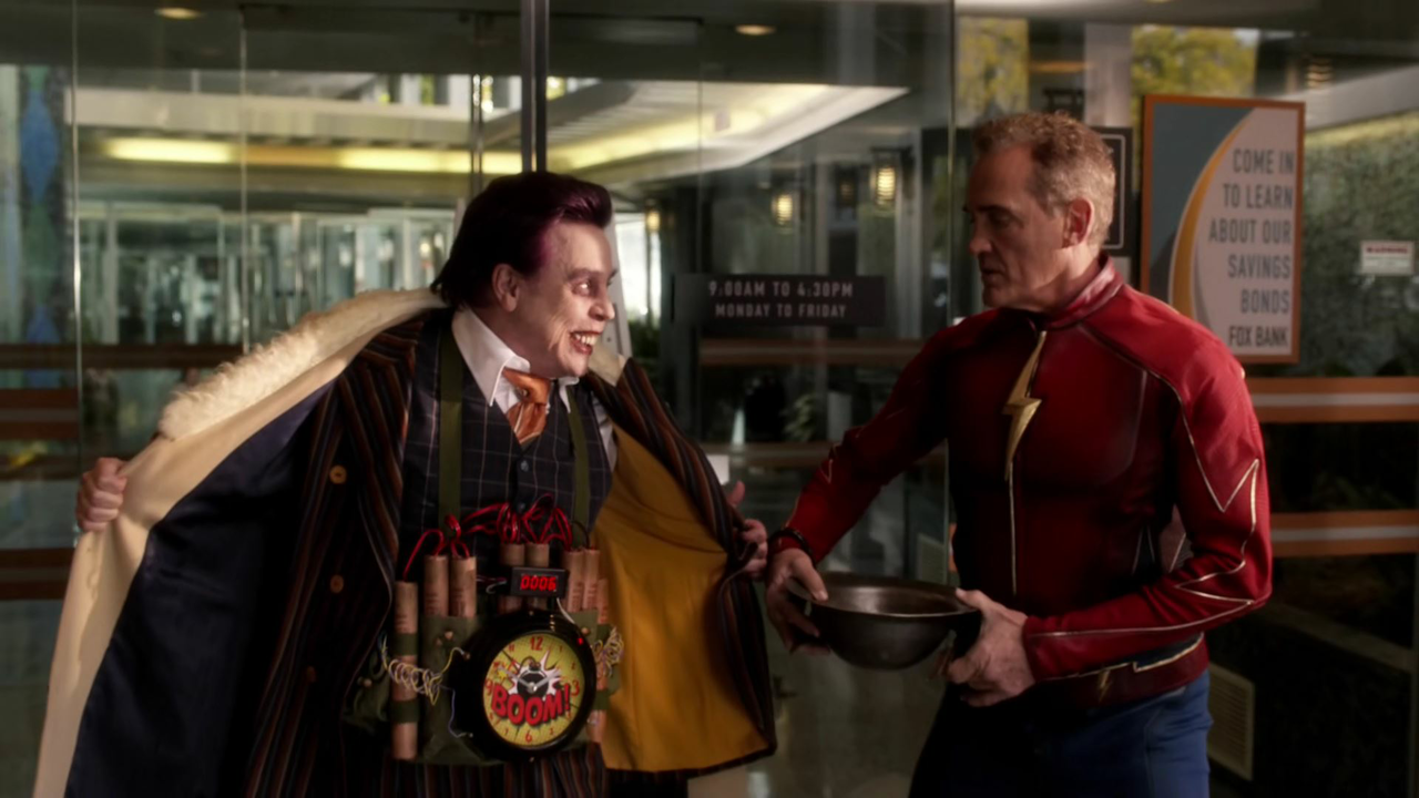 Trickster arrested after being defeated by the Flash of Earths 3 and 1.