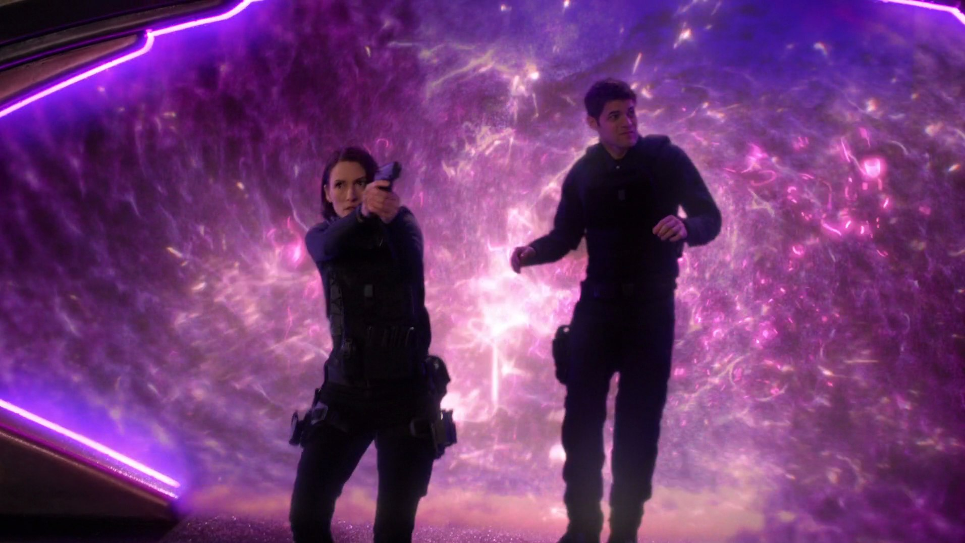 During the Thanksgiving dinner at Kara's apartment, James and Winn planned to tell her about their activities but are stopped first by Alex's vain attempt to come out to her mother and then by the opening of a breach.[31] Some nights later, while he was fighting crime alongside Guardian, one of the criminal they were chasing run in his direction and, as he exited the van in an attempt to stop him, Winn was quickly subdued and nearly killed by the robber if not for Guardian's intervention. The accident leaves him a little shaken and with a fear of dying, despite at first he tried to deny it and says everything was fine; however, after the D.E.O. found out that Kara and Mon-El had been taken to the planet Maaldoria, where they wouldn't have their powers, J'onn ordered him to accompany Alex in a rescue mission and Winn broke out revealing Alex about his fears, she reassured him that what he feels is normal convincing him to join her strike team.